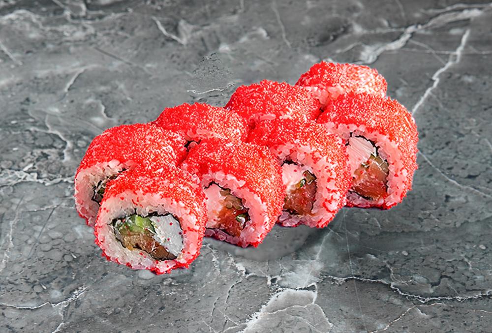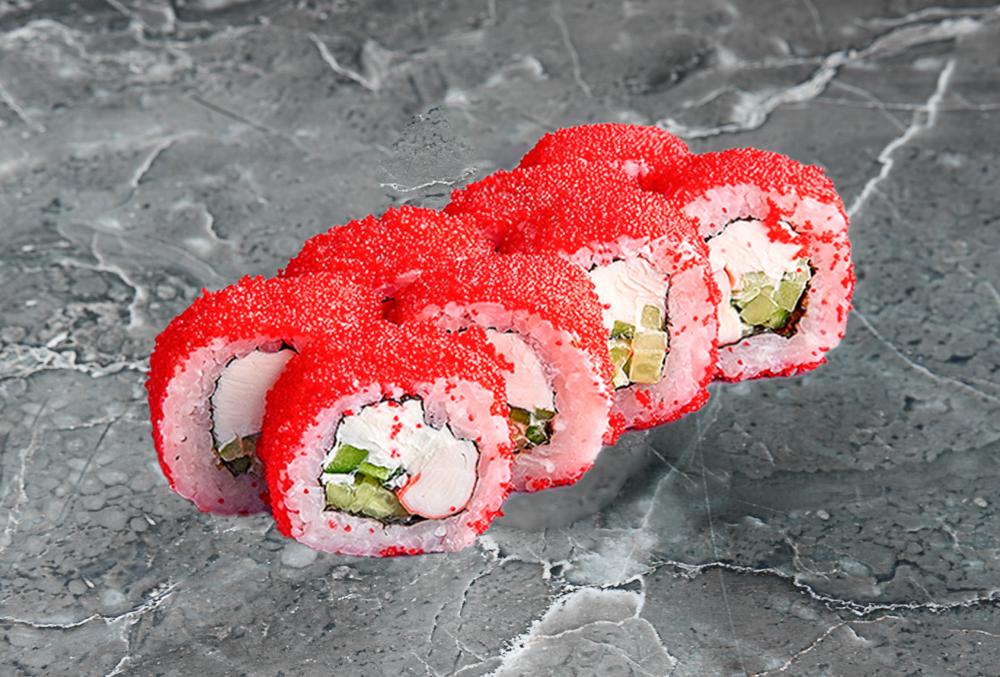 Нори, рис, краб, творожный сыр, огурец, масаго