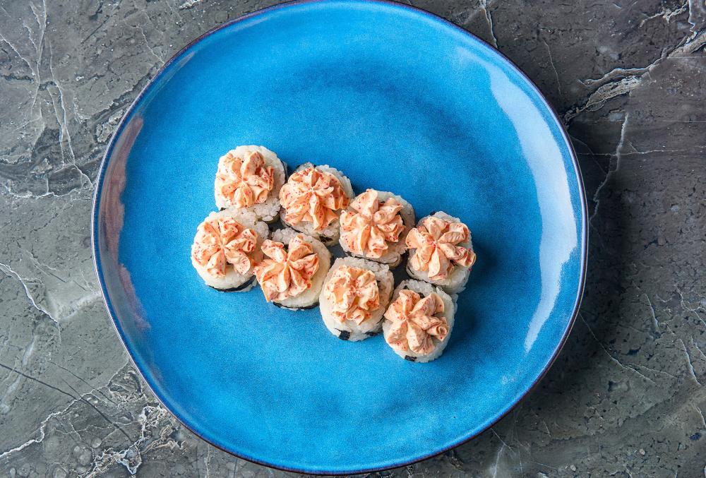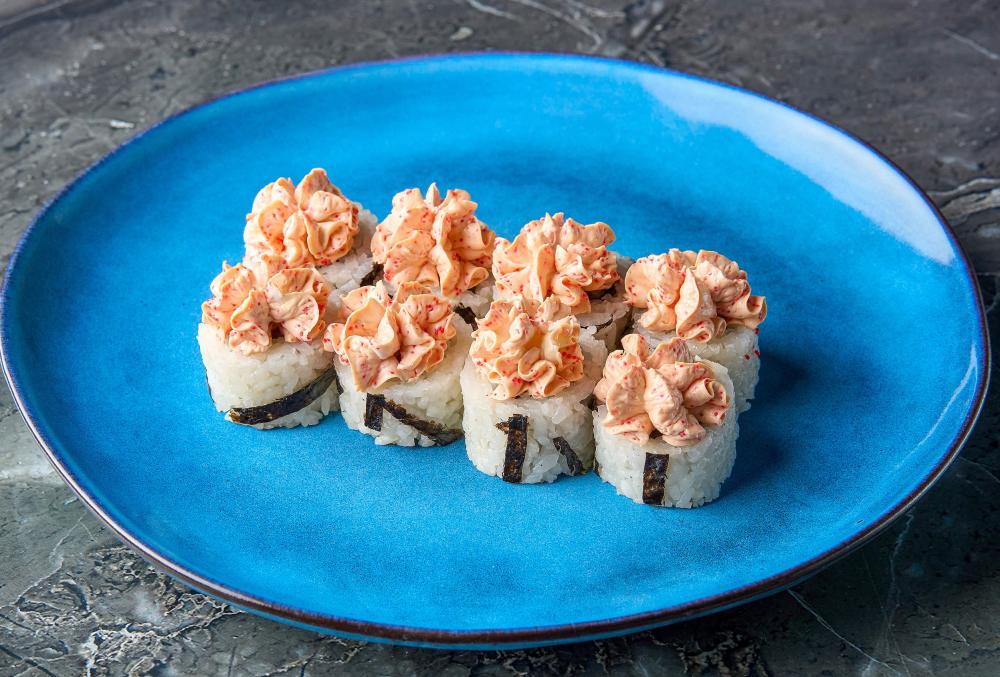 Нори, рис, курица, творожный сыр, огурец, уляр, соус спайси