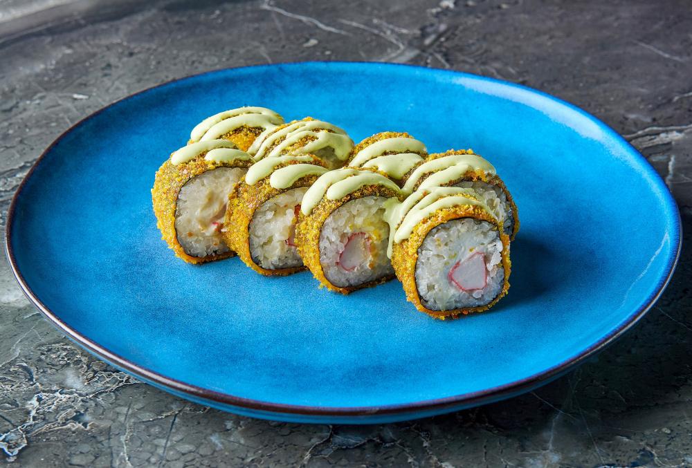 Нори, рис, краб, творожный сыр, кляр, соус васабик