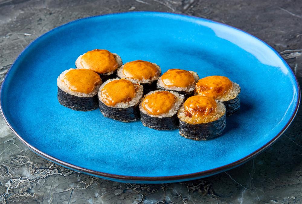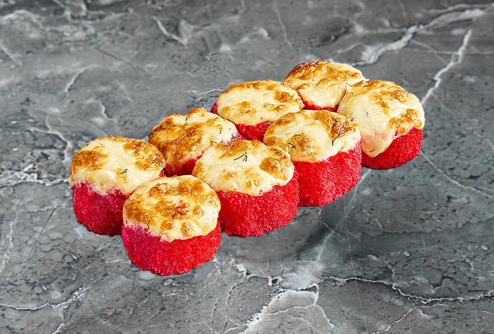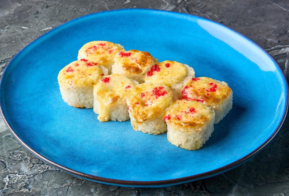Нори, рис, краб, творожный сыр, огурец, сырная шапка, масаго