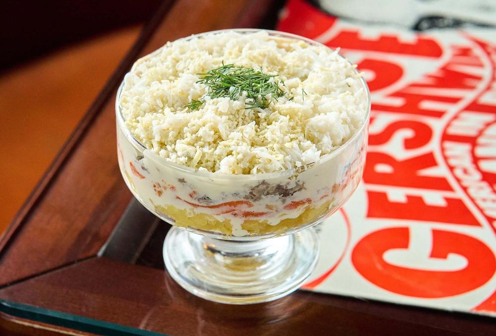 С моцареллой и черри; с лососью и сыром фетакса; с сельдью и солёным огурцом; с сыром, виноградом и грецким орехом.